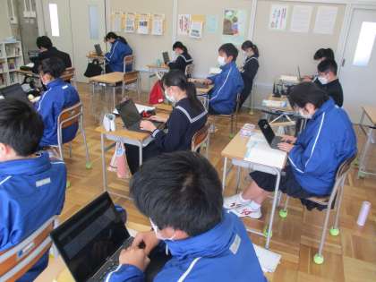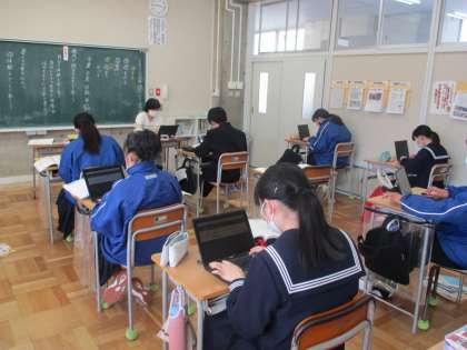 3/2(水) 1年生(国語)「構成や描写を工夫して」 公開日 2022/03/03 更新日 2022/03/03 Rできごと これまで学習してきた随筆の構成や描写を参考にして、印象に残った体験を文にしています。静まりかえった教室にタイピングの音が響いており、みな真剣です!! 書けた文章をオクリンクで先生に送り、添削してもらうとともに、教科書や友達の表現も参考にしながら文章がどんどん良くなっています。
