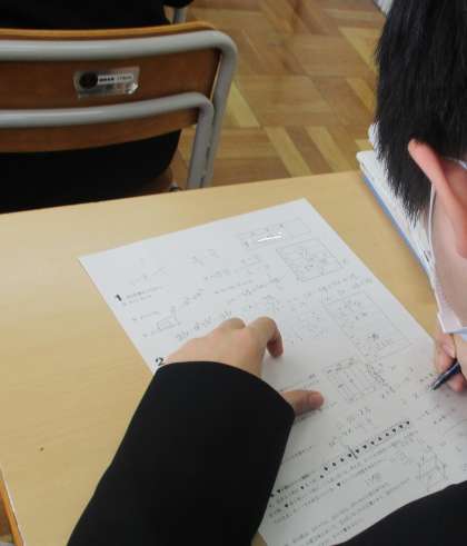 ちょっとした応用問題に挑戦しています。解けそうで解けない問題・・・時には友達の力を借りながらも、一生懸命に考えています。