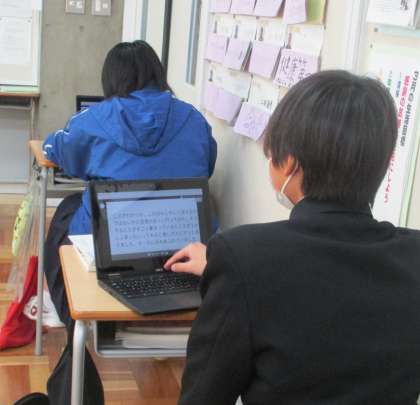3/4(金) 2年生(国語)「構成・展開の工夫」 公開日 2022/03/08 更新日 2022/03/08 Rできごと 想像力を働かせて書いた「ある日の自分の物語」・・・仕上がった子からオクリンクへ。まさに小説作家になった気分?? さらに友達の作品を読みながらコメントを記入。評論家になった気分?? 全ての文章に、この1年間の成長が表れています。素晴らしい!!