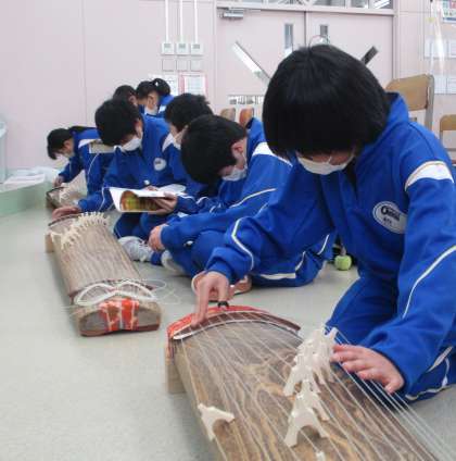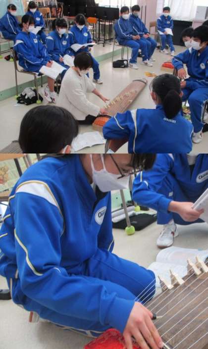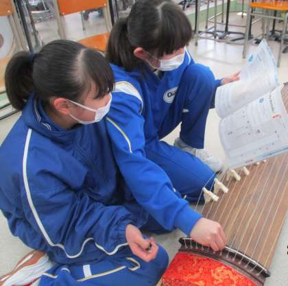 3/4(金) 1年生(音楽)「さくらさくら」 公開日 2022/03/08 更新日 2022/03/08 Rできごと 初めて琴を触った子ども達が、「さくらさくら」の演奏に挑戦!! 先生のお手本をもとに、教科書を見ながら琴を弾いてみます「778 778 7898 7876 ・・・・・」 初めてとは思えない演奏にビックリ!!