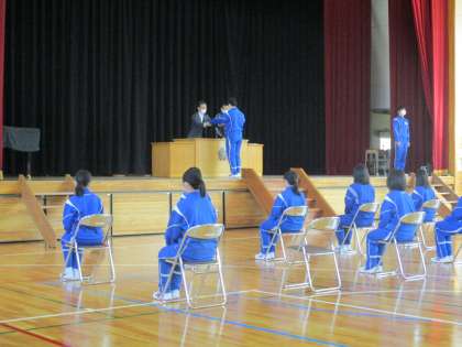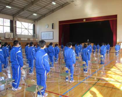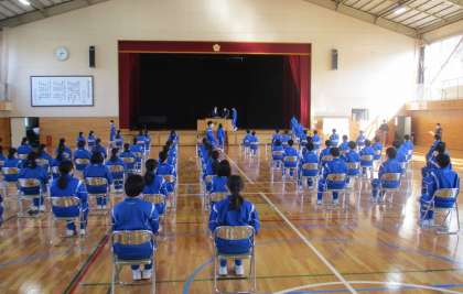 3/4(金) 卒業式全体練習 公開日 2022/03/08 更新日 2022/03/08 Rできごと 卒業式まで残り1週間、6校時に初めて全体練習を行いました。緊張した雰囲気の中、全体の流れを確認しました。 起立・礼・着席・・・しっかり出来ていました。