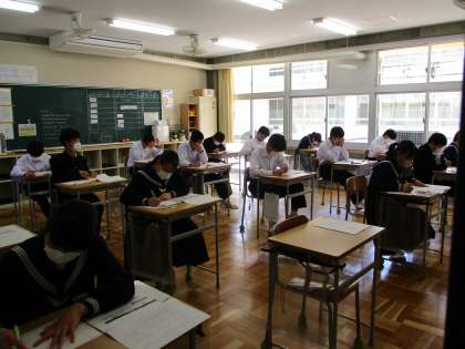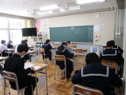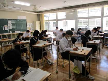 4月19日(火) 3年生「全国学力学習状況調査」 公開日 2022/04/19 更新日 2022/04/19 できごと この調査は、文部科学省が日本全国の小中学校の最高学年(小学6年生、中学3年生)全員を対象として、学力・学習状況の調査を目的として行う学力調査です。今年度は、国語、数学、理科と質問紙調査が実施されます。 3年生は真剣に、最後まで諦めずに取り組んでいます。
