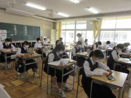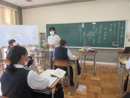 5月11日(水) 2年生国語「枕草子」 公開日 2022/05/11 更新日 2022/05/11 できごと 2年生は「枕草子」に入りました。前時に学習した「枕草子」の基礎知識を思い出してから本格的に読み始めました。小学校時代からいろいろな古典文学を口ずさんできた経験から,なかなか上手に読めています。清少納言はどんなことを「をかし」と思ったのか,さらに読み味わっていきます。