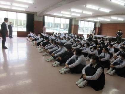 今日は月に1回の朝礼でした。校長先生からは,鬼石中の子どもたちが地域の皆さんからたくさん支えてもらっていることについて例を挙げてお話がありました。登下校の見守り,学校行事や部活動でのお手伝いや応援,その他にも日常のいろいろな場面でみんな思いあたることがあるようで,うなづきながら話を聞いていました。感謝の気持ちをもちながら,鬼石連携型小中一貫校の教育目標の「地域に貢献できる」生徒を目指していきます。
