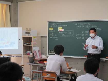 5月18日(水) 3年生(社会)「ポツダム宣言と日本の敗戦」 公開日 2022/05/18 更新日 2022/05/18 できごと 日本が、どのような地域で激しい空襲をうけたのかなど、資料を基に確認しながら学習を進めています。教師の発問に対して、積極的に発言することができるのが鬼石中生のよいところの一つです。