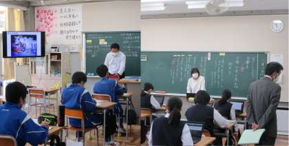 本日の午前中、藤岡市教育委員会より田中教育長様をはじめ6名の方々が来校され、年度始訪問が実施されました。年度始訪問とは、鬼石連携型小中一貫校の子供たちが自立・貢献に向けて成長し続けていけるよう、学校経営などについて指導・助言をしていただく大切な機会です。本校の生徒たちや先生方の頑張っている様子を見ていただき、おほめの言葉をいただきました。大変ありがとうございました。ご指導いただいたことを子供たちのために生かしていきます。