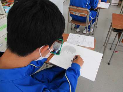 5月20日(金) 3年生(美術)「自画像」 公開日 2022/05/20 更新日 2022/05/20 できごと 今日も皆真剣に描いています。これまでに、髪や黒目をしっかりと書き込むことを意識して描いてきています。先週よりもだいぶ進んだように見えます。
