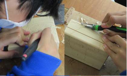 5月20日(金) 2年生(美術)「木箱」 公開日 2022/05/20 更新日 2022/05/20 できごと 木箱に思い思いの彫刻を施しています。この木箱は、3年生で制作する「篆刻」を入れるケースになるのだそうです。学びはつながっていますね。