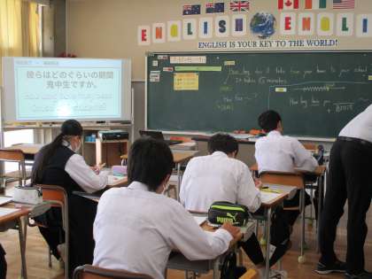 5月23日(月) 3年生(英語)「現在完了形」 公開日 2022/05/23 更新日 2022/05/23 できごと 現在完了については、現在までどのくらい継続しているかについて尋ねることができます。生徒は、友達に聞きたい内容を考え、会話練習に取り組んでいました。
