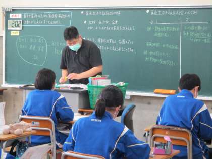 5月24日(火) 1年生(家庭)「家庭と家族関係」 公開日 2022/05/24 更新日 2022/05/24 できごと これまでの学習で、家庭では、子どもを育てる、衣・食・住、看護・介護など、様々な機能があることを知りました。自分は、家庭で支えられているということに改めて気づいた生徒も多かったと思います。本時は、その家庭は、地域によって支えられていると言うことについて考える時間でした。