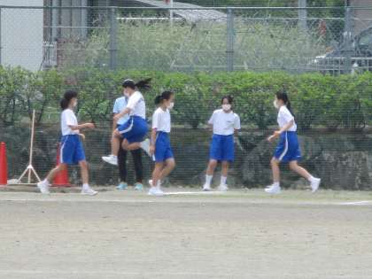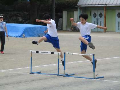 5月26日(木) 1年生(保体)「陸上競技」 公開日 2022/05/26 更新日 2022/05/26 できごと 今日は、ハードル、走り幅跳び、リレーの3種目です。これまでに意識してきた「踏切足」「フォーム」を意識しながら最後の練習です。