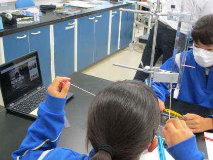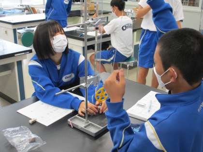 5月27日(金) 3年生(理科)「仕事の原理」 公開日 2022/05/27 更新日 2022/05/27 できごと 動滑車を使うと半分の力でものを動かすことができます。しかし、移動距離は?という学習をしています。皆真剣に実験や振り返りに取り組んでいます。