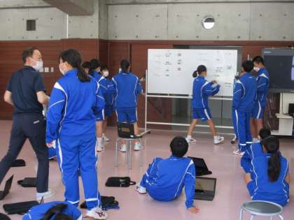 6月29日に予定されている陸上記録会の出場種目を決めました。縦割りで3つの団に分かれてランチルームで話し合いました。まずは、団長副団長、学年代表を決め、団の勝利を目指して話し合いを進めました。