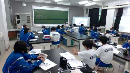5月31日(火) 3年生(理科)「仕事率」 公開日 2022/05/31 更新日 2022/05/31 できごと 前回は仕事について学習しました。同じ仕事でも、短い時間で済ませられれば能率は良いことになります。今回は、仕事の能率「仕事率」について学び、演習問題を解いて計算方法を身に付けていきました。 授業 3年