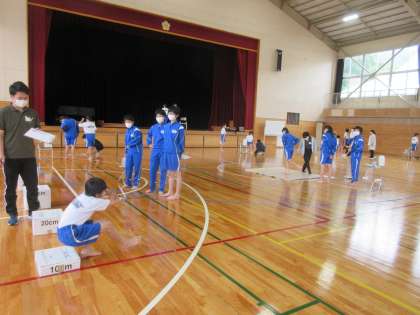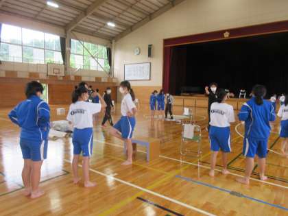 5月31日(火) 運動器検診(2年生) 公開日 2022/06/01 更新日 2022/06/01 できごと 本校の卒業生である高崎健康福祉大学の学生の研究グループとの協力による運動器検診を,今日は2年生が行いました。昨年度も同時期に行われているので,1年間の成長や変化を検証しながら,健康でケガをしにくい体づくりに役立てたいと考えています。昨年度のことを思い出しながら,学生の皆さんに手助けしてもらい,無事に行うことができました。