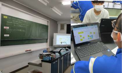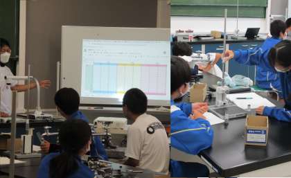 6月1日(水) 3年生(理科)「位置エネルギー」 公開日 2022/06/01 更新日 2022/06/01 できごと これまでに、仕事とは何か、エネルギーとは何かということなどについて学習してきました。今日は、位置エネルギーの大きさが何に関係しているかということを予想し、実験で確かめます。予想は、ジャムボードを使って全員が出し合い、共有しました。実験データについては、スプレッドシートに入力しグラフ化するということで、タブレットPCをフル活用した実験でした。