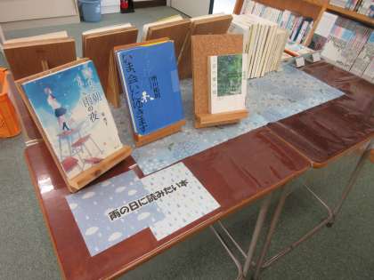 6月の図書室 公開日 2022/06/02 更新日 2022/06/02 お知らせ 6月になり,雨の季節もすぐそこでしょうか。図書室の入口には,学校図書館司書さん手作りのかわいらしい傘が並んでいます。中に入ると「雨の日に読みたい本」が紹介されています。また,部活動が題材の本も特集されていました。雨も,部活動も,もちろん読書も,いろいろ楽しめる6月になるとよいですね。