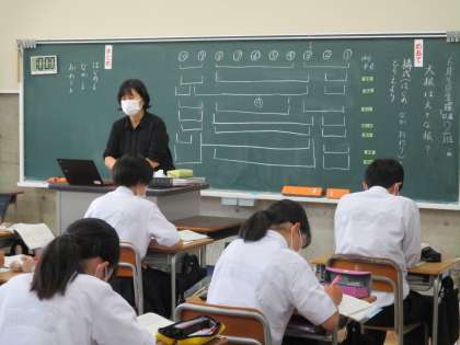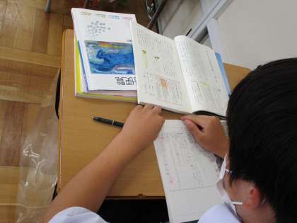 6月3日(金) 1年生(国語)「大根は大きな根?」 公開日 2022/06/03 更新日 2022/06/03 できごと 前の時間の続きです。ムーブノートに入力した一人一人の考えを基に、「はじめ、なか、おわり」のどこに当てはまるのか班で考えました。