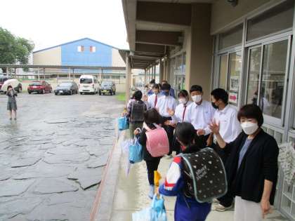 6月6日(月) 小中合同あいさつ運動 公開日 2022/06/06 更新日 2022/06/06 できごと 昨日から降り続いている雨の中でしたが、鬼石北小、鬼石小でのあいさつ運動に中学生が参加しました。地域の方々も参加してくださっていましたので、あいにくの雨模様となった週のスタートが、少し明るくなったように感じました。お世話になりました。