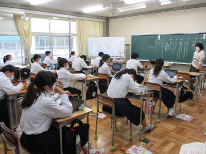 6月6日(月) 2年生(国語)「クマゼミ増加の原因を探る」 公開日 2022/06/06 更新日 2022/06/06 できごと 説明文の授業です。文章だけでなく、図や表をいれることでどのような効果があるのかについて班ごとに考え、全体で検討しています。「一目で変わる」「わかりやすい」「納得できる」などの意見が出ていました。