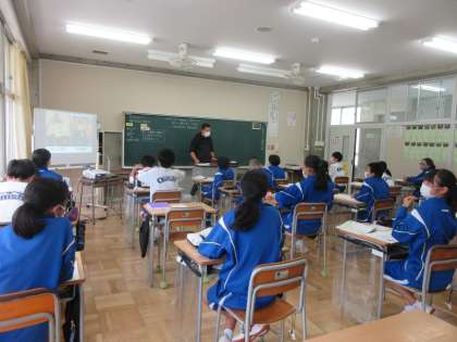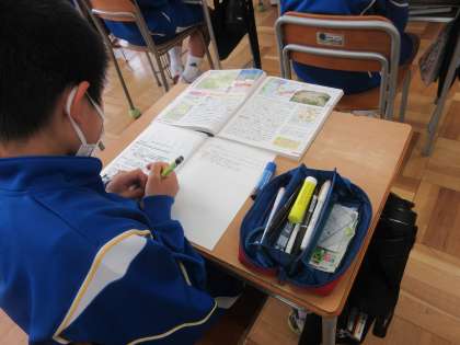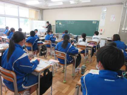 1年生の歴史学習は奈良時代に入っています。これまでに学習した聖徳太子や蘇我氏を振り返ってから,ここでは大化の改新について学びます。この政治改革の実現には50年を要したこと,中国や朝鮮半島などからの海外の文化との交流が盛んだったこと,など1年生は「そうなんだあ」と声を上げながら興味深く学習に取り組んでいました。