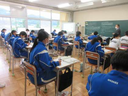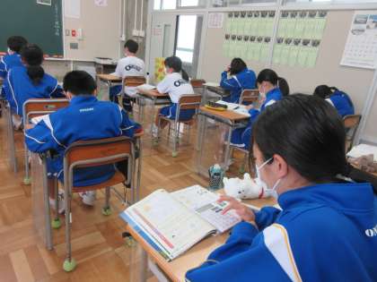 6月7日(火) 1年生(数学) 「正の数と負の数の利用」 公開日 2022/06/08 更新日 2022/06/08 できごと 1年生の数学は新しい単元に入りました。はじめに,体育の長距離走の記録の平均値を求めます。まずは,記録を足して人数で割ろうと考えました。足し算に時間がかかり,最終的には電卓で計算しました。これも一つの方法ですが,よりかんたんにはやく計算できる方法はないでしょうか。基準の記録との差で計算する方法があるようです。正の数と負の数を上手に使えるでしょうか。