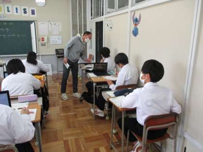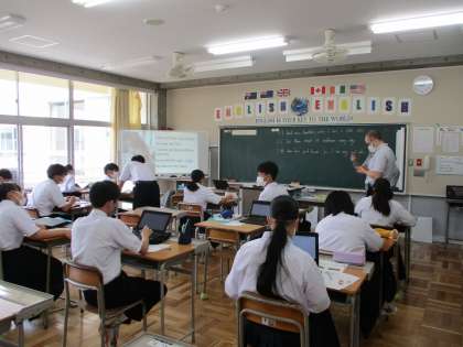 6月13日(月) 3年生(英語)「人間と動物との共生について考える」 公開日 2022/06/13 更新日 2022/06/13 できごと ペットなど、自分と動物とのこれまでの関わりについて、現在完了形を使って英作文に取り組んでいました。