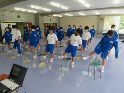 6月17日(金)1年生(総合的な学習の時間)「高齢者についての基礎知識」 公開日 2022/06/19 更新日 2022/06/19 できごと ふじおか出前講座として,藤岡市役所元気長寿課の方が来てくださいました。高齢者の心身の特徴を学んだり,高齢者と共に生活する中で大切なことを考えたりしました。また,筋力トレーニング教室も体験しました。祖父母等と一緒に住んでいる子どもたちはもちろん,ふだん高齢者と接することが少ない子どもたちも,自分たちにできることを考える機会になりました。