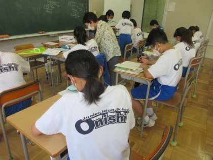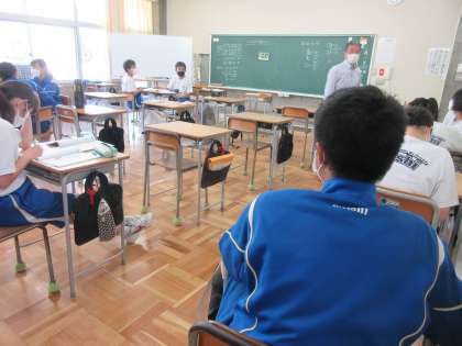 6月17日(金) 2年生(数学)「期末テストに向けて」 公開日 2022/06/19 更新日 2022/06/19 できごと 来週の期末テストに向けて,2年生の数学は総復習の時間でした。教科書の問題やワークの問題に挑戦しながら,分からないところを先生にきいたり友達と教え合ったりして,力を付けていました。