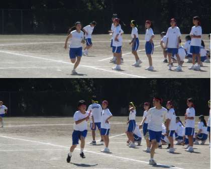 昨日実施できなかった全員リレーを30日の1校時に行いました。8:35のスタートでしたが、それでも強い日差しが照りつけていました。