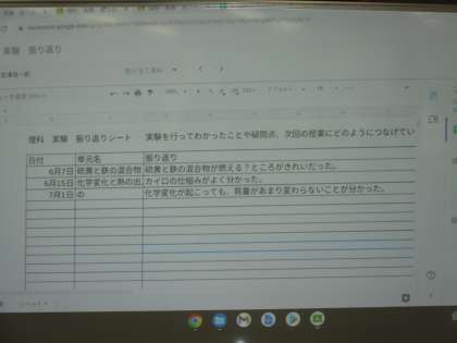 7月4日(月) 2年生(理科)「質量保存の法則」 公開日 2022/07/04 更新日 2022/07/04 できごと これまでの学習の振り返りをもとに、「化学変化の前後で物質の質量はどうなるのだろうか」について、予想を立ててから、実験に取り組みました。