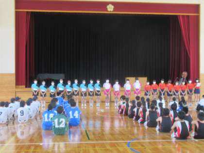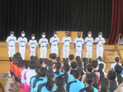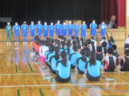7月8日(金) 中体連夏季大会・コンクール壮行会(1) 公開日 2022/07/10 更新日 2022/07/10 できごと 3年生にとっては部活動の集大成となる,中体連夏季大会やコンクールに向けての壮行会が行われました。 写真は,野球部,サッカー部,ソフトテニス部,です。
