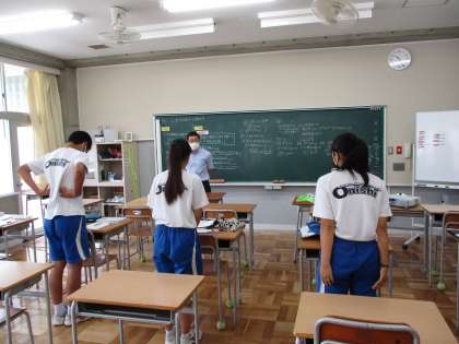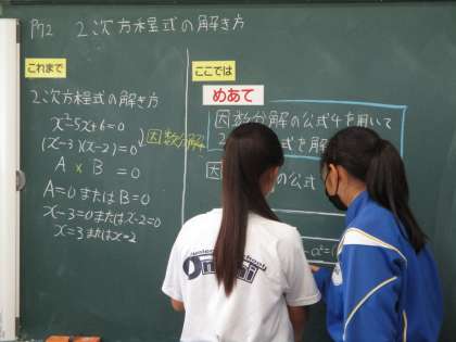 7月11日(月) 3年生(数学)「2次方程式」 公開日 2022/07/11 更新日 2022/07/11 できごと 因数分解の公式1〜4を使って、2次方程式を解いています。公式は、すぐすぐには覚えられないかもしれませんが、毎日繰り返し学習していればいつの間にか覚えてしまうものです。頑張りましょう!