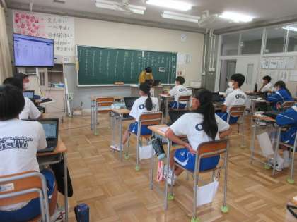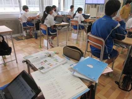7月12日(火)3年生(国語)「俳句を味わう〜お気に入りを見つけて〜」 公開日 2022/07/12 更新日 2022/07/12 できごと 俳句の特徴を学んだ3年生は,いろいろな俳句を読んで評価して,お気に入りを見つけました。前時までに,それぞれの俳句の季節,情景や作者の思いなど,各自で分かったことが書き込まれ,本時はタブレットを使って共有しています。お互いの気づきに感心したり驚いたりしながら,俳句を味わっていました。