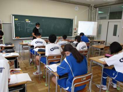 7月13日(水) 2年生(数学)「1次関数」 公開日 2022/07/13 更新日 2022/07/13 できごと 1次関数のグラフの書き方の学習です。1次関数は、伴って変わる2つの数があり、xを決めるとyも一つだけ決まります。それを方眼にプロットしていくことで、点が線となります。