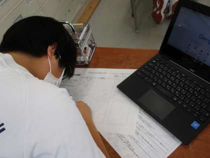 7月15日(金) 2年生(美術)「夏休みの課題」 公開日 2022/07/25 更新日 2022/07/25 できごと 美術の夏休みの課題について、イメージを膨らませて、応募するものを一人一人が決めていました。ついつい最後まで残してしまいがちな宿題ですので、早めに仕上げましょう。