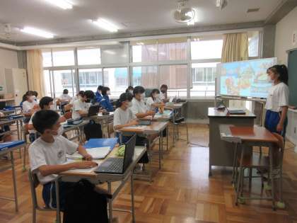 まもなく夏休み。「もし海外旅行をするとしたら・・・」2年生22人全員が自分の立てた計画を発表しました。