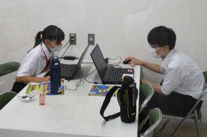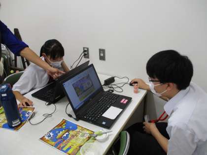 職員の方が体を張って用意した素材を使いパンフレットの作成中です。