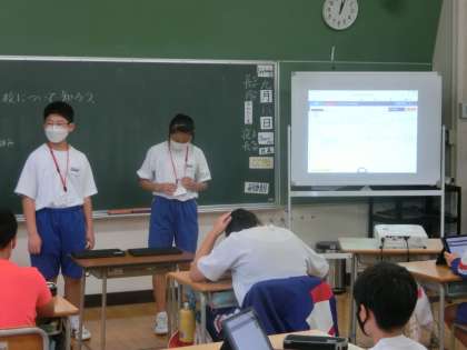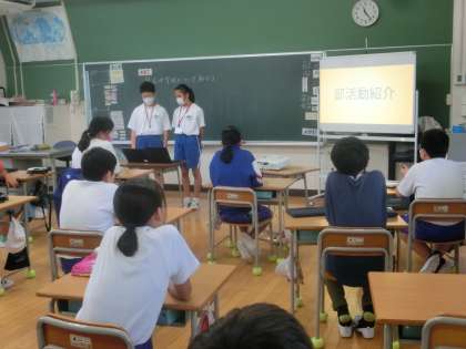 9月8日(木) 2年生チャレンジウィーク(鬼石小学校) 公開日 2022/09/08 更新日 2022/09/08 2年チャレンジウィーク チャレンジウィーク4日目になりました。 鬼石小学校では鬼石中学校の紹介が行われました。 小学校と中学校の違い、学校行事や部活動など、来年から入学して来る6年生へ向けて発表しました。鬼石中学校の魅力を伝えられ、良かったですね!