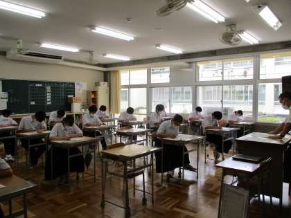 今日は、今年度第4回の実力テストです。自分の進路に向けて、授業や家庭学習に対する意欲が高まっている生徒が多くなってきましたので、その成果を存分に発揮してほしいと思います。