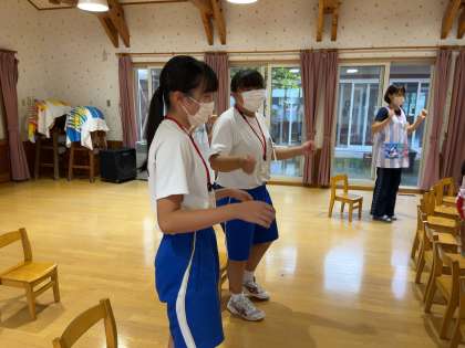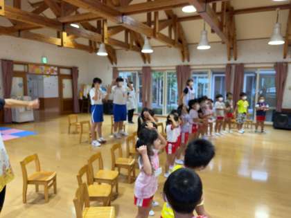 9月9日(金) 2年生チャレンジウィーク(御園保育園) 公開日 2022/09/09 更新日 2022/09/09 2年チャレンジウィーク 御園保育園では、昨日英語教室をしていました。園児のパワーに圧倒されながら、いっしょに英語を楽しんでいました。 2年