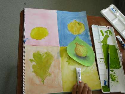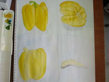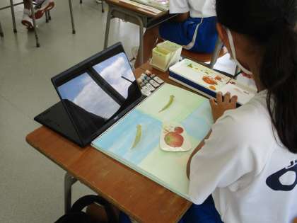 9月16日(金) 1年生(美術)「水彩画(野菜)」 公開日 2022/09/16 更新日 2022/09/16 できごと いよいよ彩色に入っています。皆無言で真剣に取り組んでいます。質感や影の様子がとても上手です。