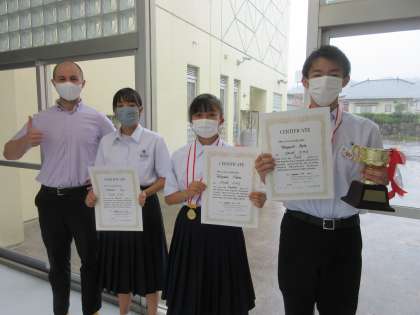 英語弁論大会は,今年度も感染症対策のために生徒は集まらず,事前に収録したビデオによる発表と審査が行われました。鬼石中学校の各学年の代表者の発表はいずれもすばらしかったです。特に3年生は1位入賞! 見事に県大会出場を決めました。2年生も入賞し県大会に手が届きそうでした。1年生も審査員からお褒めの言葉をいただきました。10月の桜華祭では英語弁論の発表をライブで行う予定です。どうぞご期待ください。