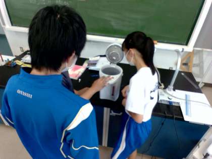 前回の食物の学習を生かして、「食物に含まれる養分は、どのように消化されるのか」というめあてで学習をしました。ガスバーナーを使う方法もありますが、今回は、マイクロチューブと電気ポットを使っての実験になります。4つのマイクロチューブに、デンプン+だ液とデンプン+水の組み合わせを2組作ります。1組はヨウ素デンプン反応、もう1組はベネジクト液の反応を見ます。さて、でんぷんはだ液によってどのような変化を遂げたのでしょうか。次回、まとめになります。