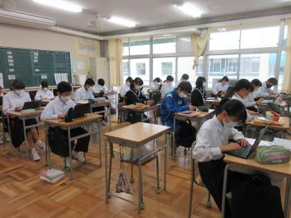 10月5日(水) 2年生(国語)ビブリオバトルに向けて 公開日 2022/10/05 更新日 2022/10/05 できごと 2年生は中間テスト後にビブリオバトルを行う予定です。本を読み直している人,発表の原稿を準備している人,まずはテストを!ということでテスト勉強をして質問をしている人もいました。みんな自分で考えてやるべきことをやれています。ビブリオバトルもテストも楽しみです。
