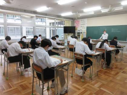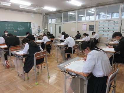 3年生は,昨日の中間テストに続いて,今日は実力テストをしています。今日も5教科のテストです。進路選択に向けて重要な資料のひとつとなるため,みんな真剣に取り組んでいます。