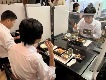 10月10日(月) 修学旅行1日目(奈良編) 公開日 2022/10/10 更新日 2022/10/10 3年修学旅行 奈良県に入りました。奈良公園を散策する前に、まずは腹ごしらえです。天平倶楽部というお食事どころで、いただきます!