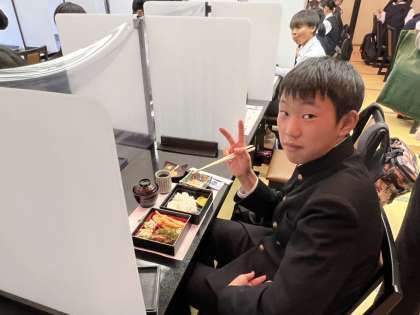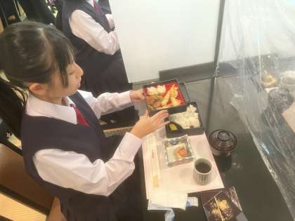 10月10日(月) 修学旅行1日目(奈良編) 公開日 2022/10/10 更新日 2022/10/10 3年修学旅行 奈良県に入りました。奈良公園を散策する前に、まずは腹ごしらえです。天平倶楽部というお食事どころで、いただきます!