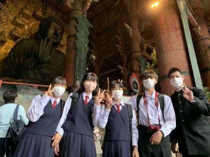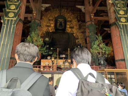 さぁ、いよいよ奈良公園での班別学習です。まずは、大仏様を拝みます。