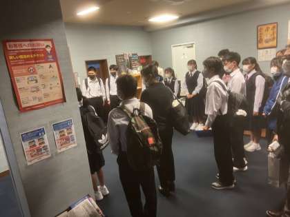 10月10日(月) 修学旅行1日目(都和編) 公開日 2022/10/10 更新日 2022/10/10 3年修学旅行 2日間お世話になる宿、都和に到着しました。実行委員長がスタッフの皆様に挨拶をし、室長会議を行い、しっかり過ごせるようにします!